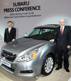 スバルコリアは4月末から中型セダンの「レガシィ」(排気量2.5リットル、3.6リットル)とクロスオーバー多目的車(CUV)の「アウトバック」(2.5リットル、3.6リットル)、スポーツ用多目的車(SUV)の「フォレスター」(2.5リットル)を市販すると21日に明らかにした。これにより韓国市場に進出する日本の自動車メーカーはトヨタ、ホンダ、日産、三菱、スバルの5社に増える。スバルコリアは高麗製鋼系列の高麗商事が100%出資して昨年6月に設立された。