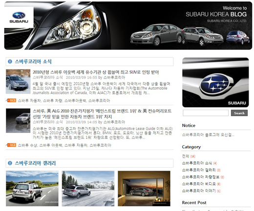 韓国市場進出を4月に控えたスバルコリア(www.subarukorea.kr)が、スバル車に関する詳細な情報を提供する一方、消費者のさまざまな意見を共有するために公式ブログ(http://blog.subarukorea.kr/)をオープンした。