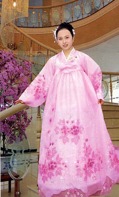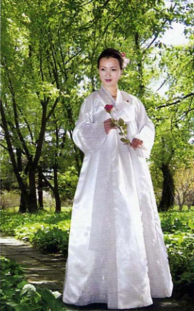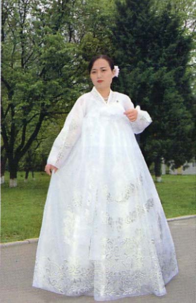 朝鮮民芸連合商社の民族衣装製作団が作った朝鮮チマチョゴリ(韓服)。韓服(ハンボック)は単色中心で、韓国の70年代のスタイルに似ている。社会主義的教養を強調する北朝鮮の思想的気風が韓服からもうかがわれる。朝鮮画報7月号の韓服モデル写真からは、衣装における南北の違いが分かる。