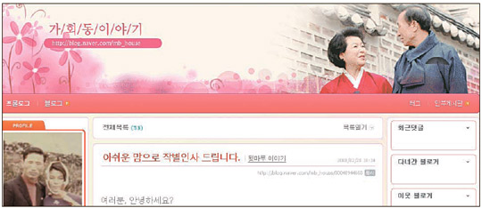金さんは昨年2月、嘉会洞の自宅を紹介した“エピソード1:韓屋”に始まり、これまで53件の書き込みをした。ハンナラ党大統領選挙候補予備選挙が行われた昨年8月には「私は李明博の隠された女だった」で始める文など続々10編掲載し、ネチズンたちの話題となった。29日まで金さんのブログには計7万6000人のネチズンが訪問した。
